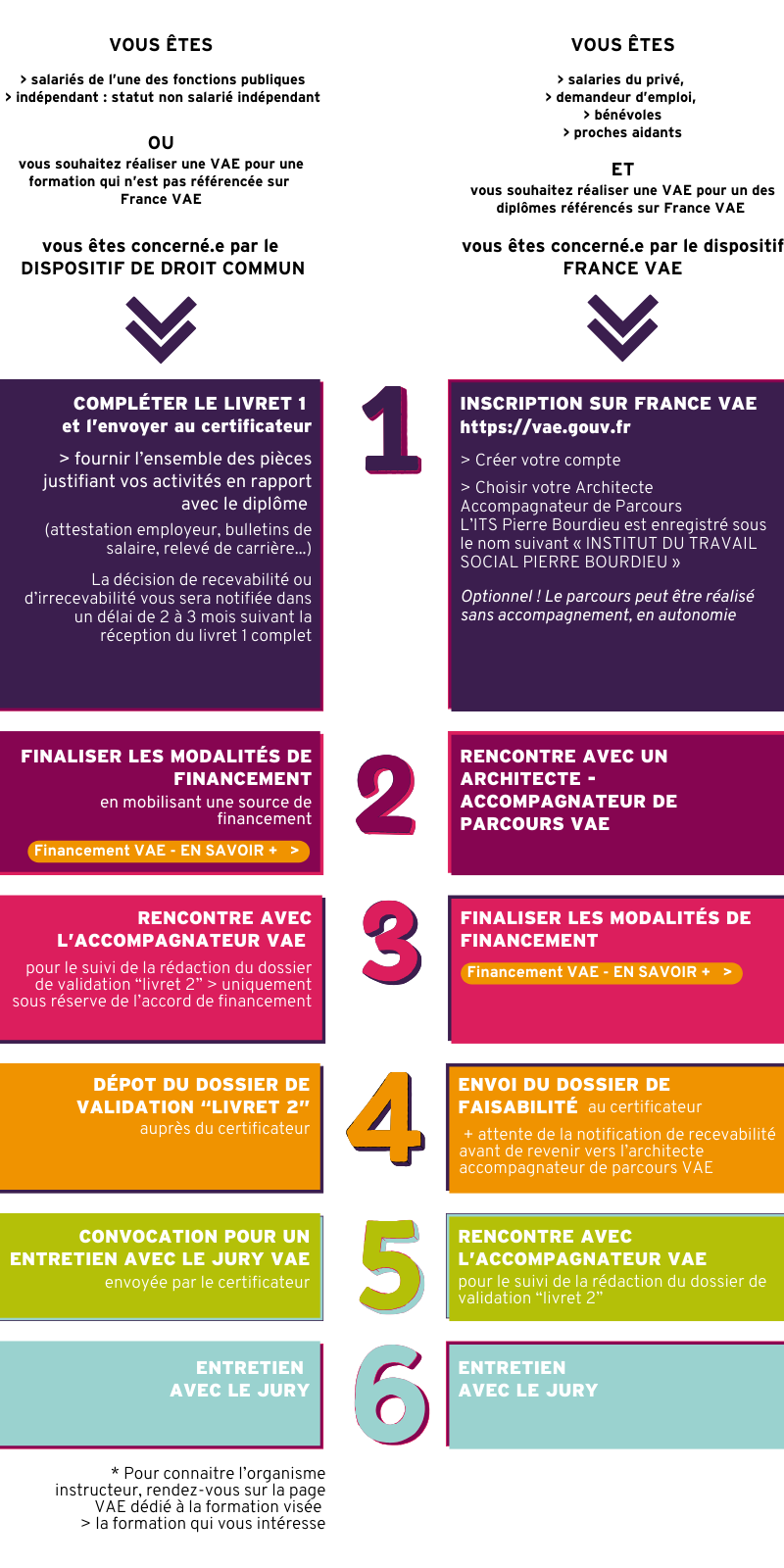 le dispositif FRANCE VAE (pour tous les diplômes du social présents dans la liste France VAE > RECHERCHER UN DIPLÔME) : pour les salariés du secteur privé, pour les demandeurs d'emploi, les bénévoles et les proches aidants